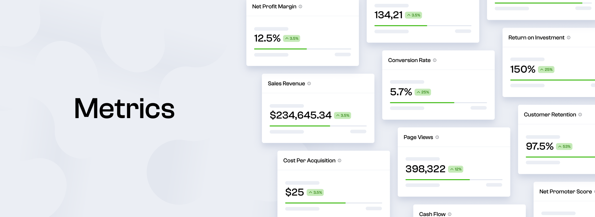 Metrics are quantitative values that measure a specific aspect of a business's performance. They are used to track progress over time and compare performance to specific targets or benchmarks. Metrics can be used to measure a wide range of business activities, from marketing and sales to customer service and operations. They provide a way to objectively measure performance and identify areas of improvement.